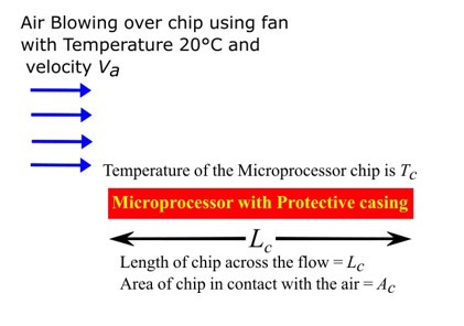 Let us consider a microprocessor chip to be cooled as shown in Fig. 1. The chip is cooled using fan(s) blown air with air velocity as at temperature