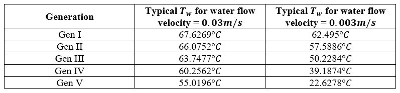 . Further, we see that for higher generations of the chips the water inlet temperature reduces quite drastically with increase in
